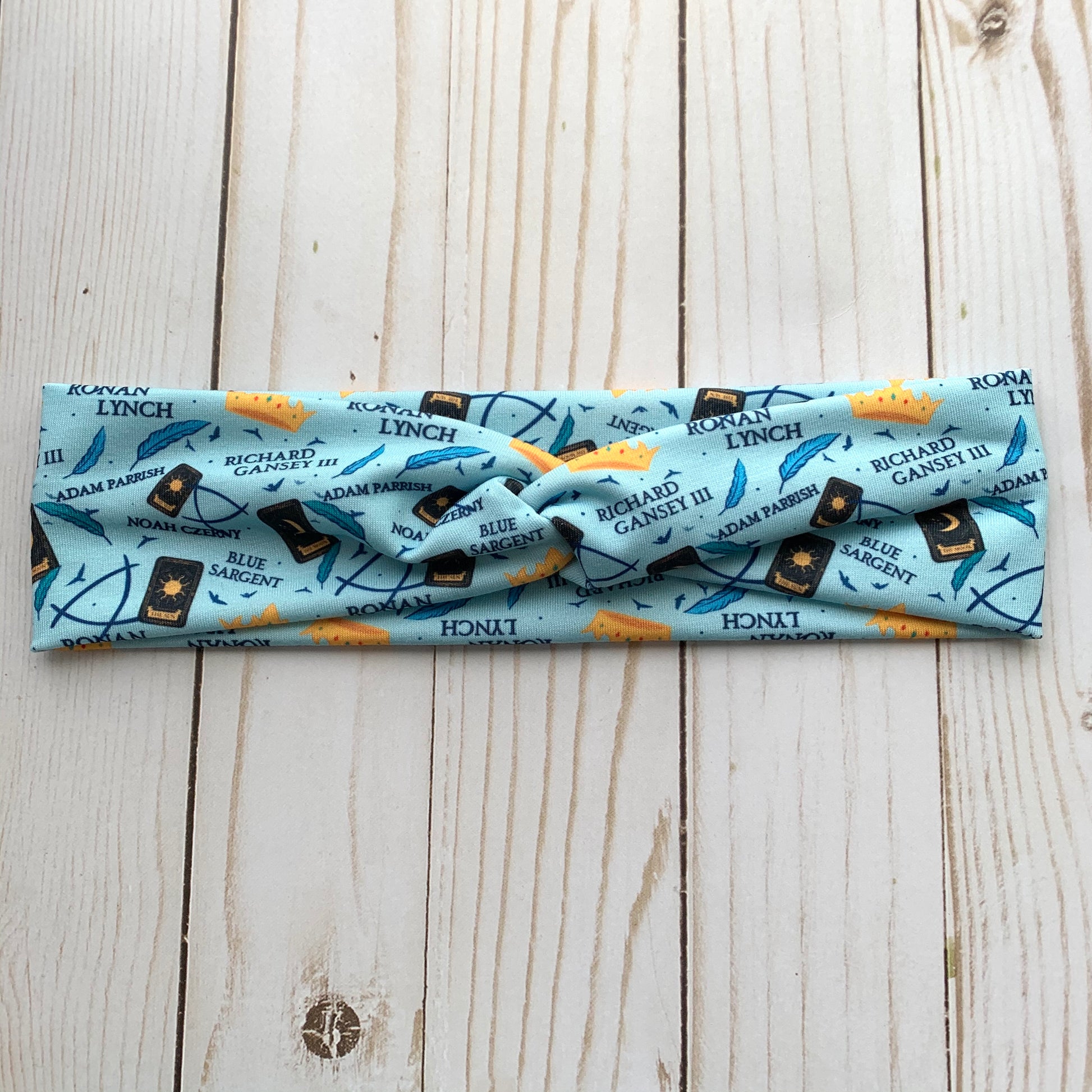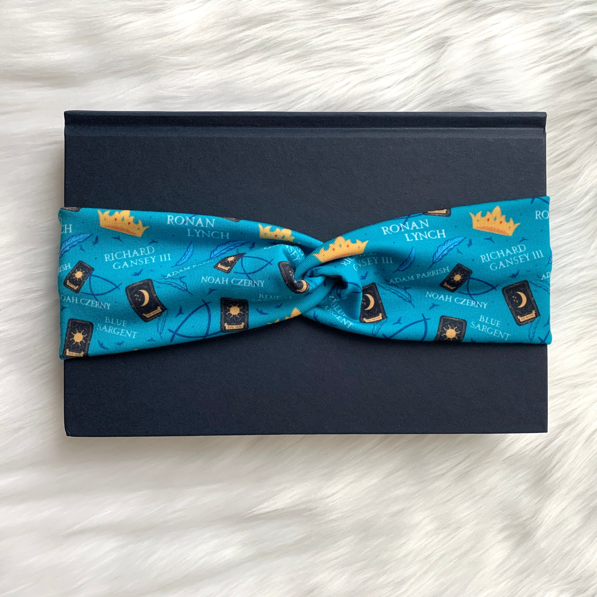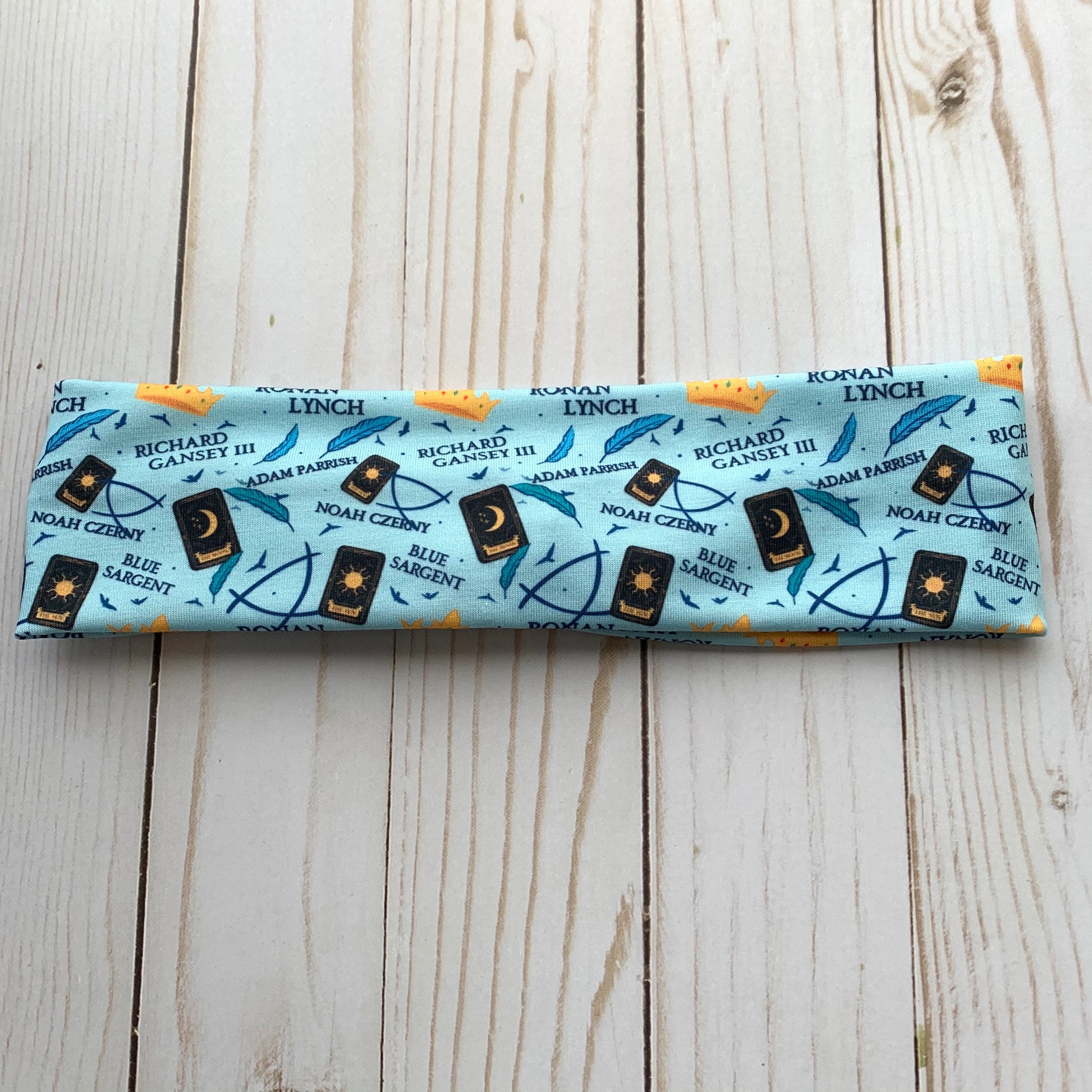 These headbands and scrunchies have a beautiful print inspired by Raven Boys. The design was made by the wonderful Azura Arts and come in 3 color options! These headbands are limited order! They will not be regularly stocked!