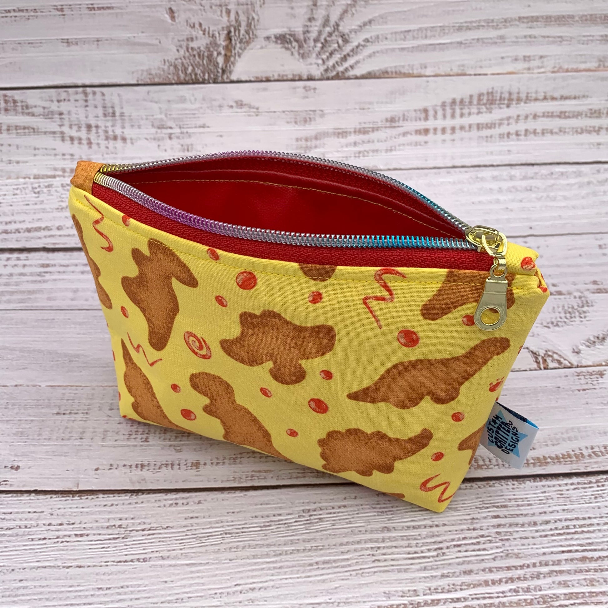 These bags have a fun nostalgic print of dinosaur nuggets!