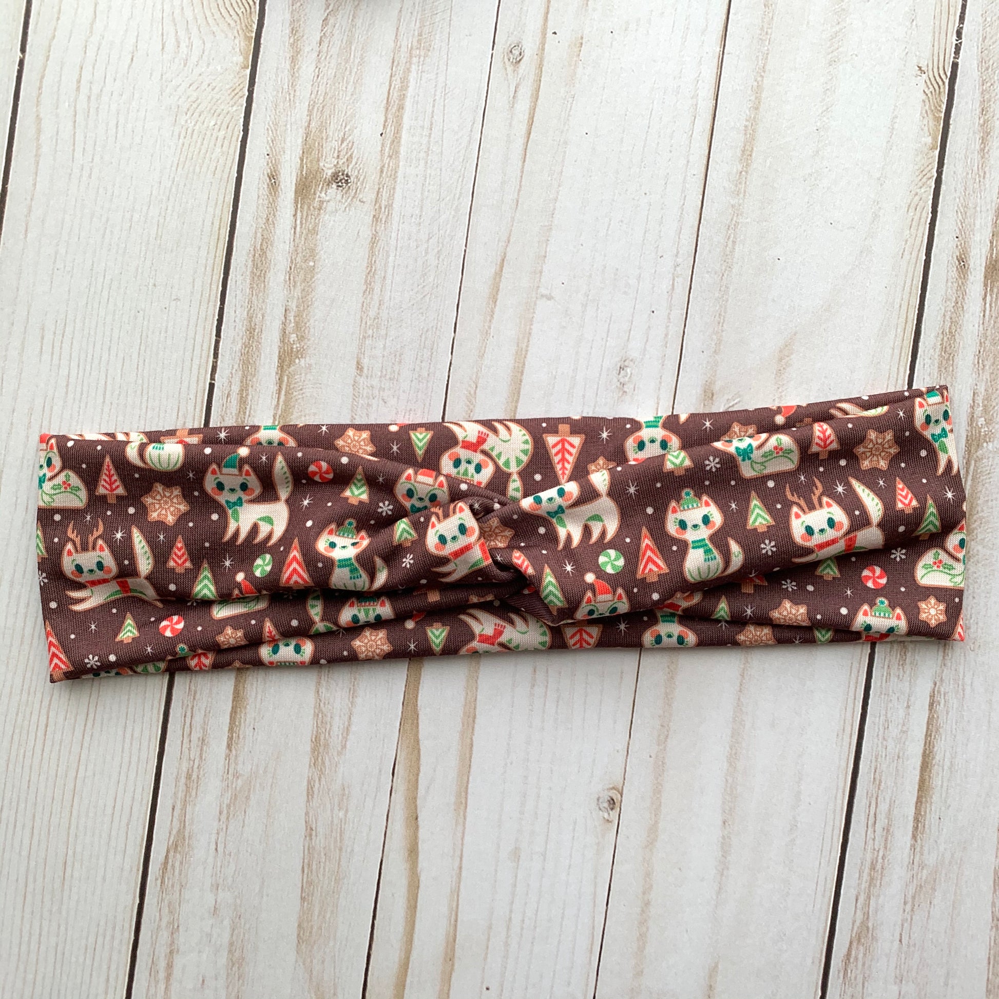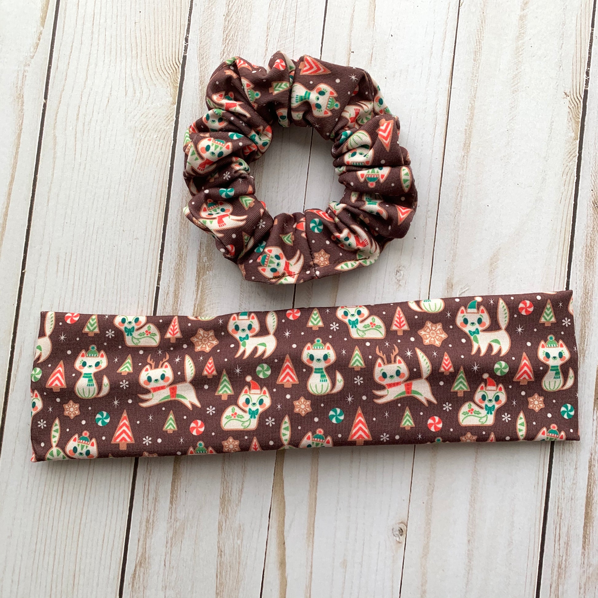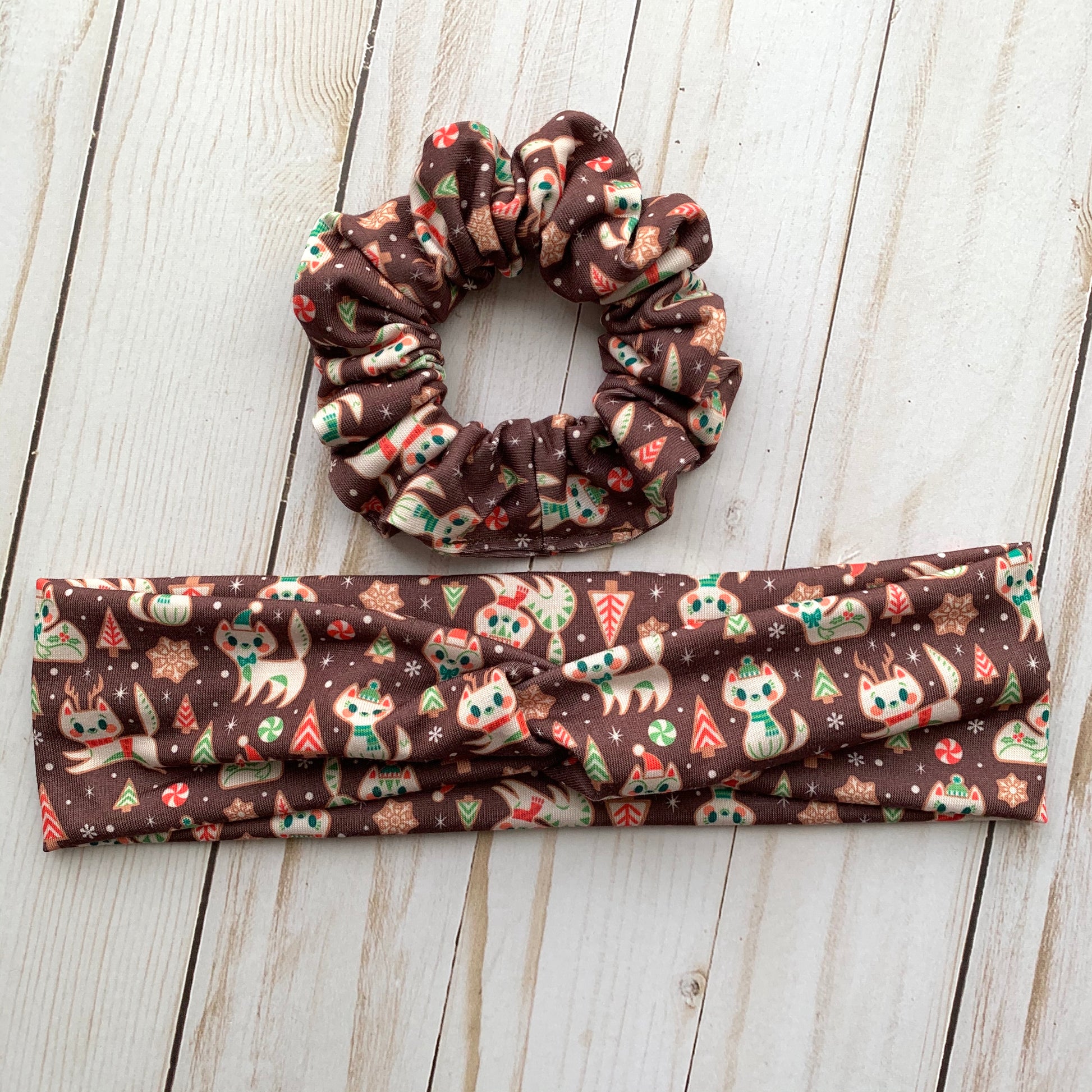 Gingerbread Kitties - Faux Knot Headband & Scrunchies