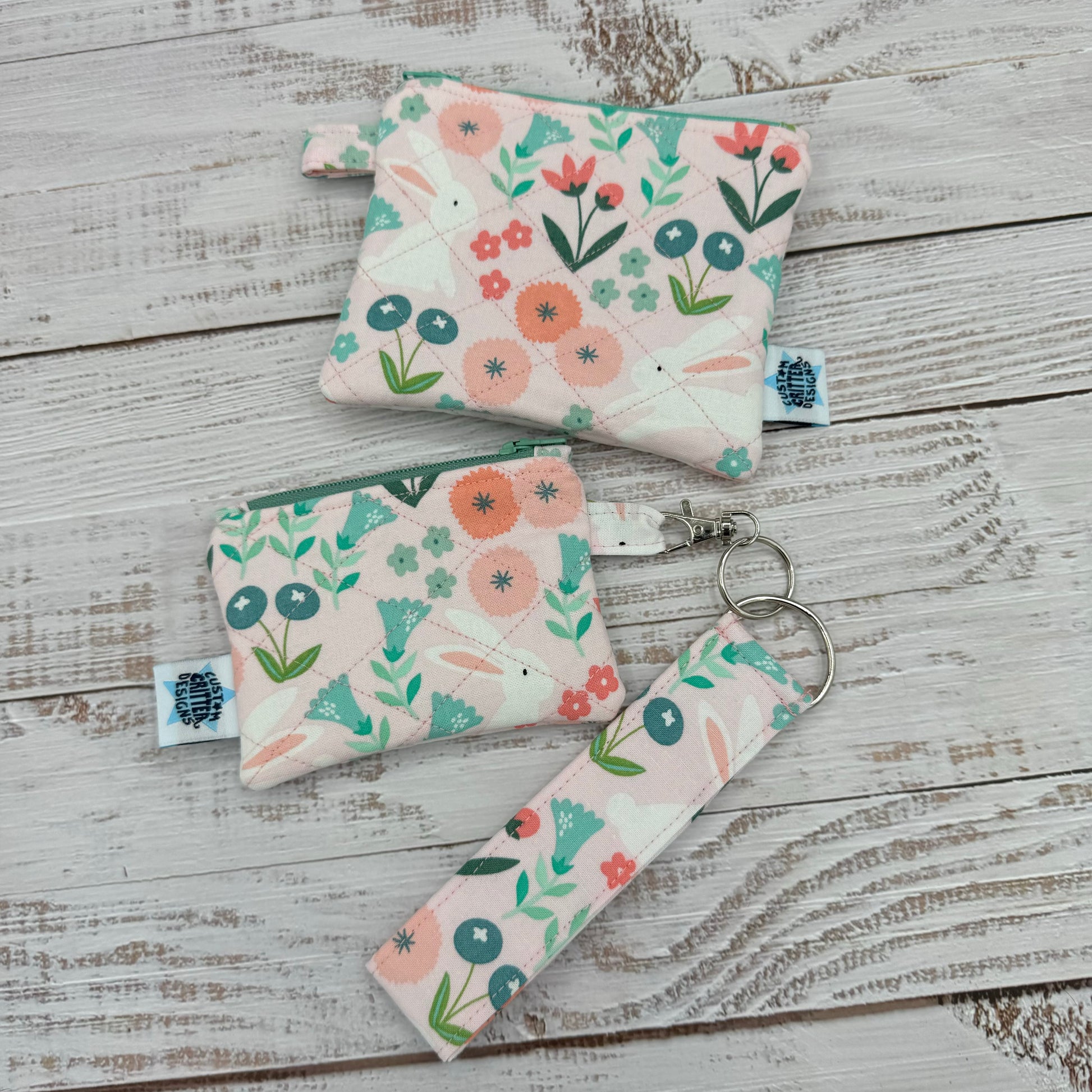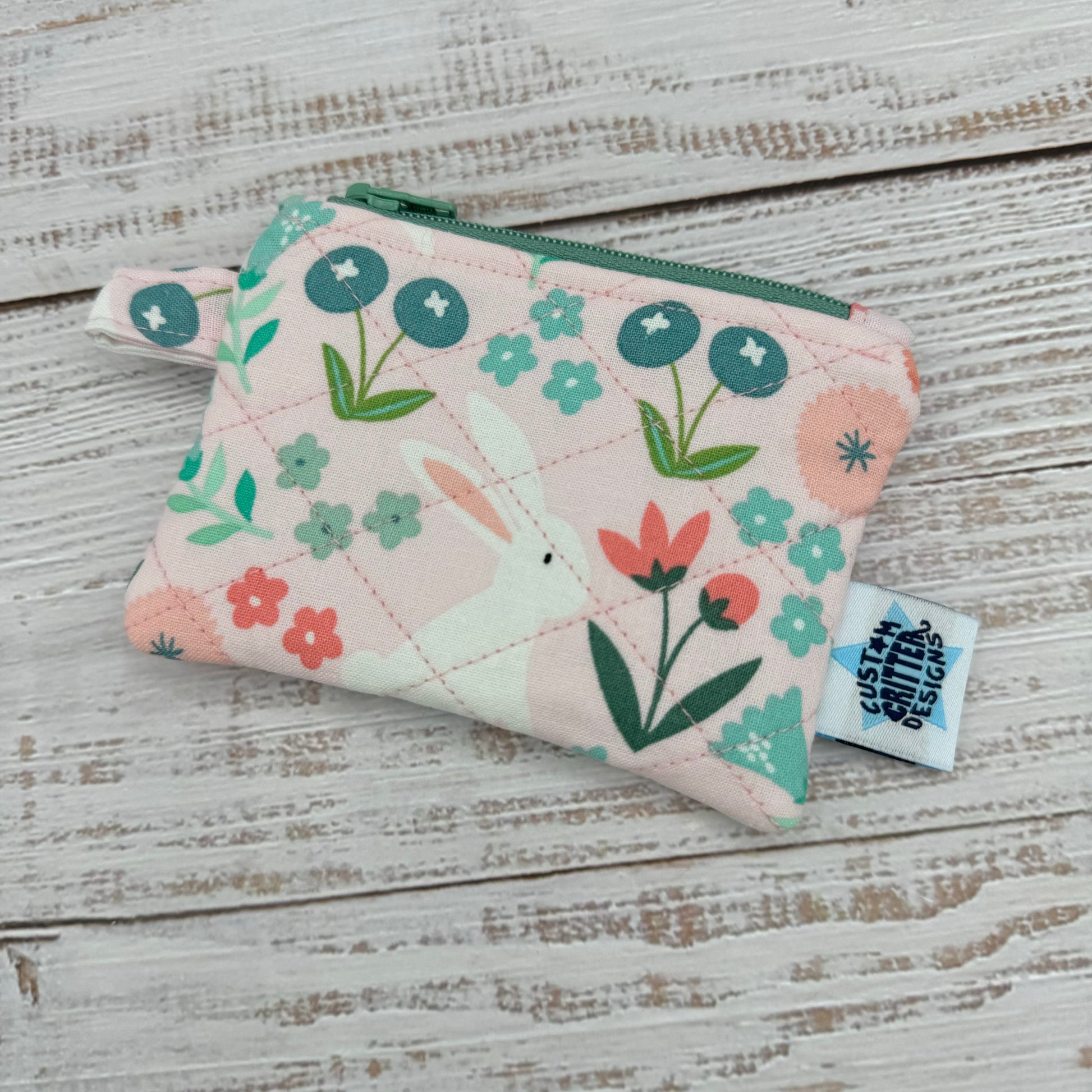 Spring Bunnies - Quilted Pouch - Coin Pouch - Keychain Clutch